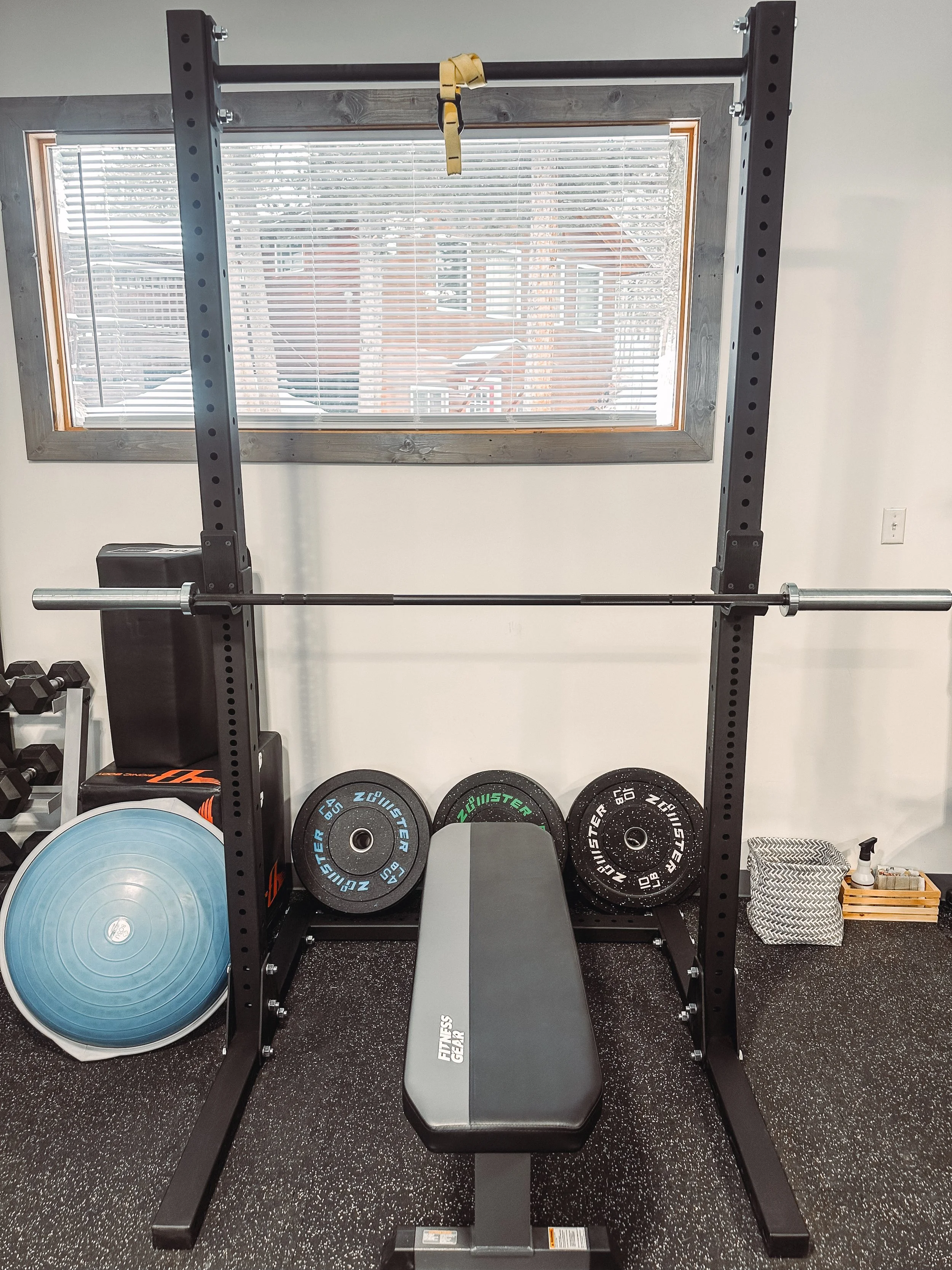 I train clients out of my garage studio, which is equipped with everything needed for an effective and functional workout. The equipment includes a squat rack, a barbell with bumper plates, a pull-up bar, a spin bike, dumbbells ranging from 5 to 50 pounds, resistance bands, a TRX system, and various other functional training tools. You won’t be disappointed when training with me!